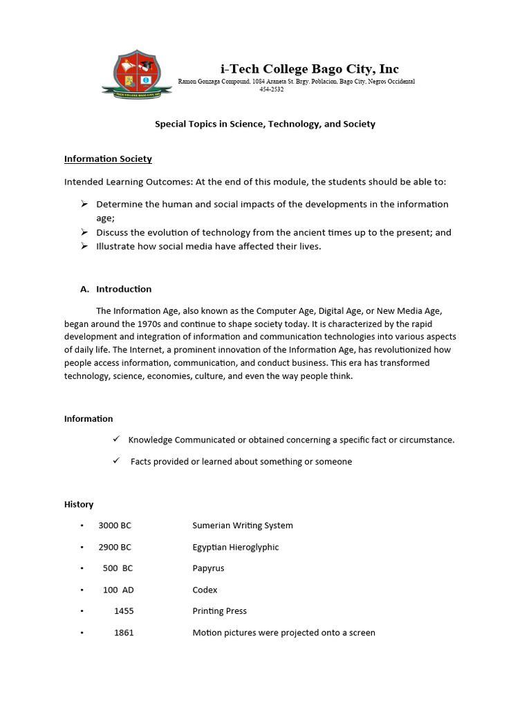 of daily life. The Internet, a prominent innovation of the Information Age, has revolutionized how
