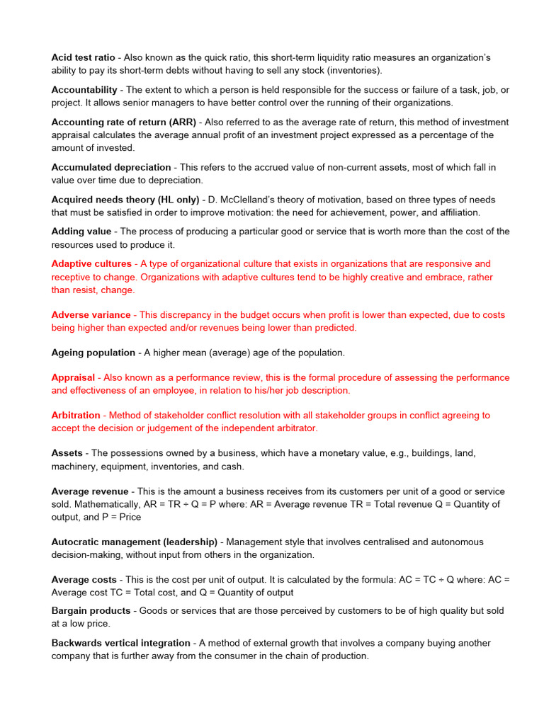 Acquired needs theory (HL only) - D. McClelland’s theory of motivation, based on three types of needs