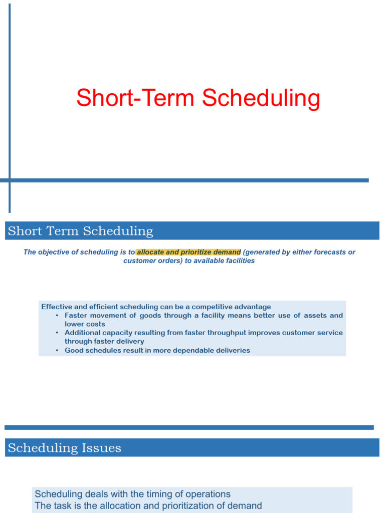 The objective of scheduling is to allocate and prioritize demand (generated by either forecasts or