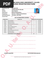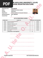 Obafemi Awolowo University, Ile Ife Online Course Registration Form