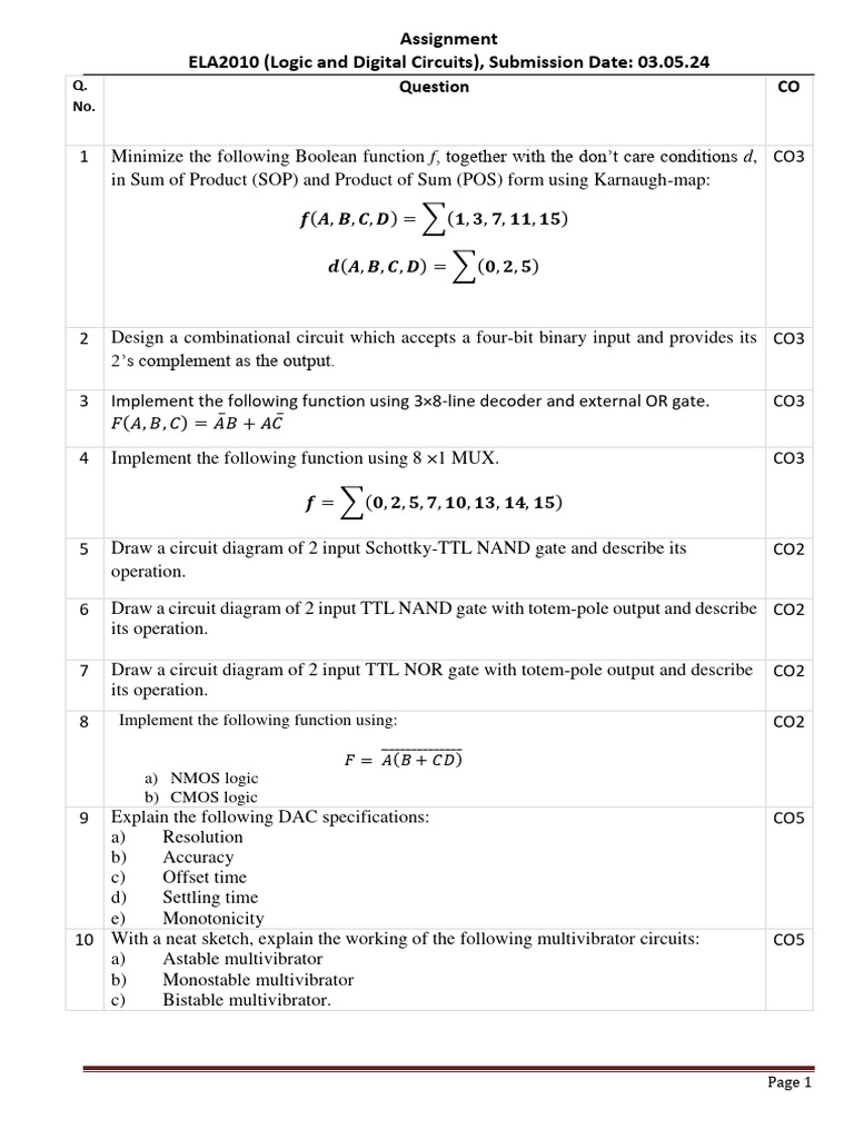 ELA2010 (Logic and Digital Circuits), Submission Date: 03.05.24
