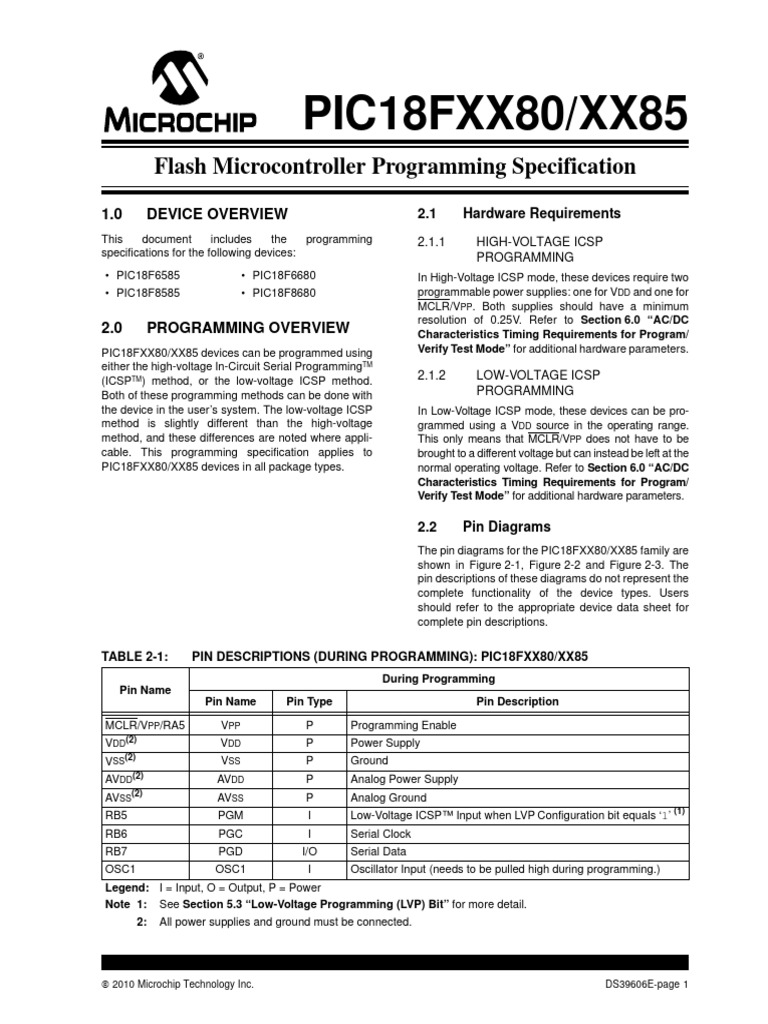 The Device ID Word for the PIC18FXX80/XX85 2: While in Low-Voltage ICSP mode, the