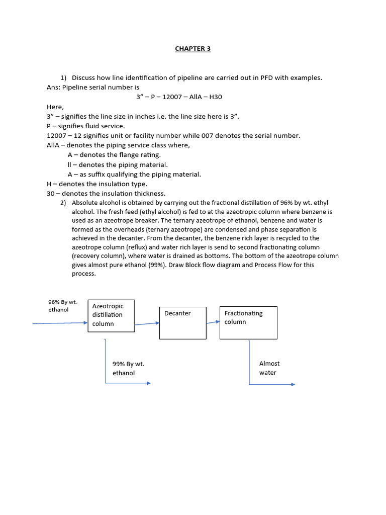 1) Discuss how line identification of pipeline are carried out in PFD with examples.