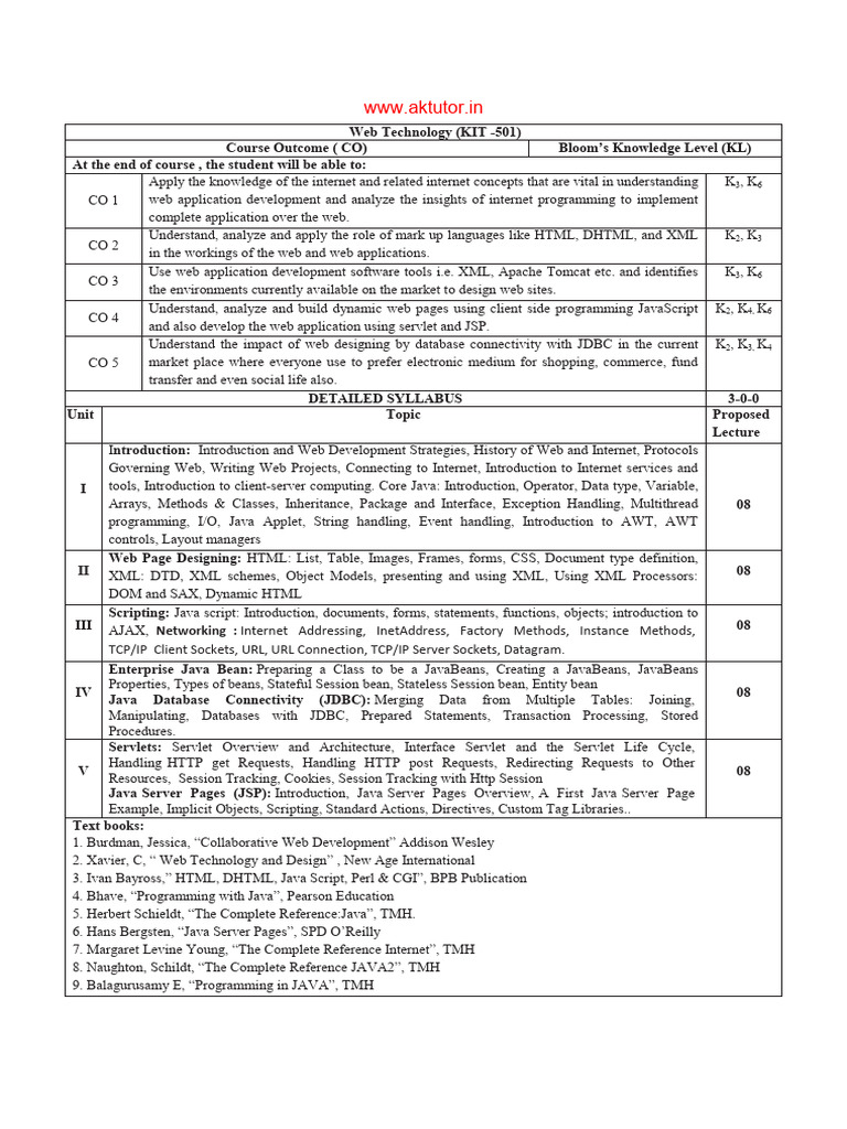 Understand, analyze and build dynamic web pages using client side programming JavaScript K2, K4, K6