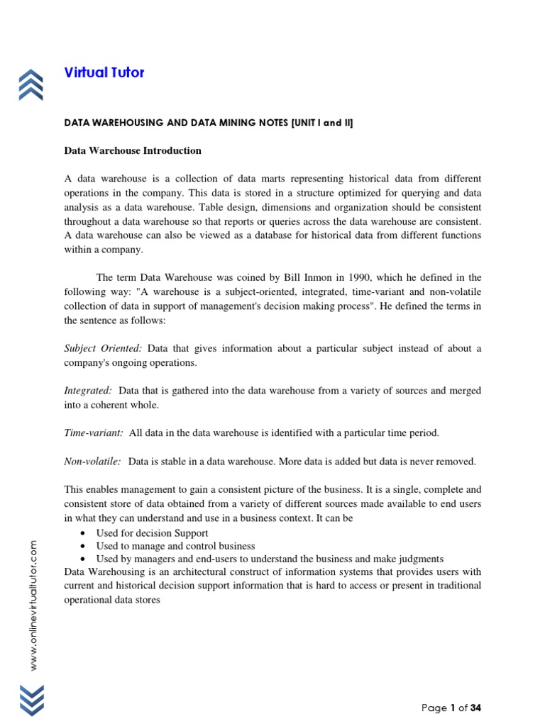 Data Warehousing and Data Mining Notes (Unit I and II)