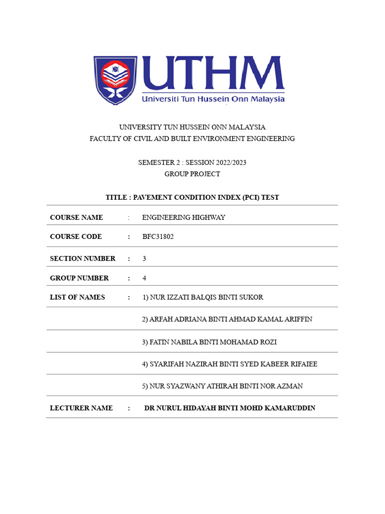 the result of a pavement condition survey that was carried out on Jalan Parit Hj.Rais. We