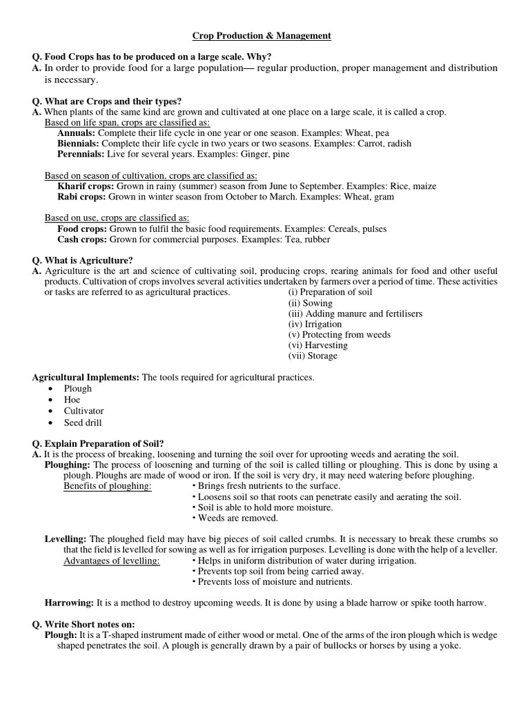 A. When plants of the same kind are grown and cultivated at one place on a large scale, it is called a crop.