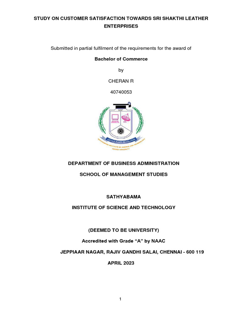 most of the customers are satisfied towards Sri Shakthi leather enterprises with respect to