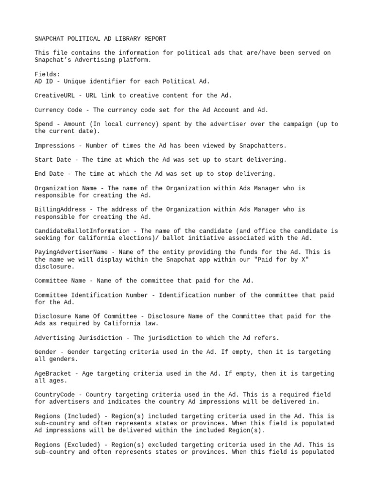 SNAPCHAT POLITICAL AD LIBRARY REPORT