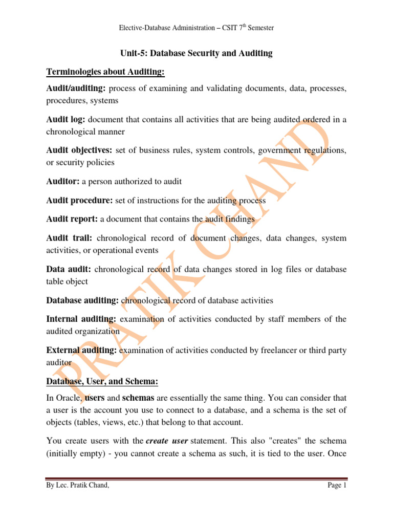 Unit-5: Database Security and Auditing