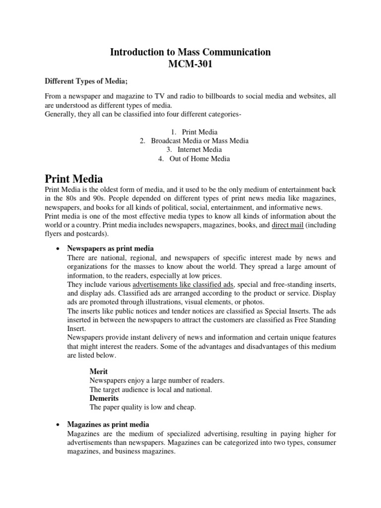 world or a country. Print media includes newspapers, magazines, books, and direct mail (including