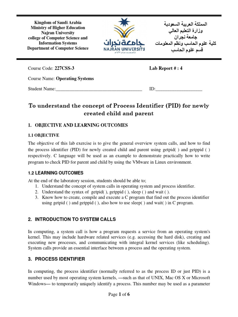 1. Understand the concept of system calls in operating system and process identifier.