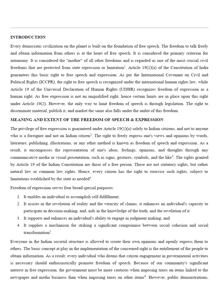 literature, publishing, illustrations, or any other method is known as freedom of speech and expression. As a