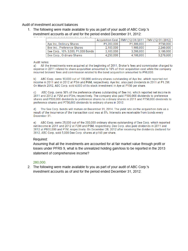 Audit of investment account balances