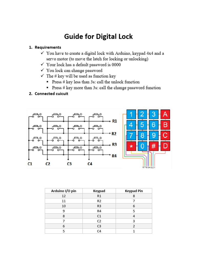 You have to create a digital lock with Arduino, keypad 4x4 and a
