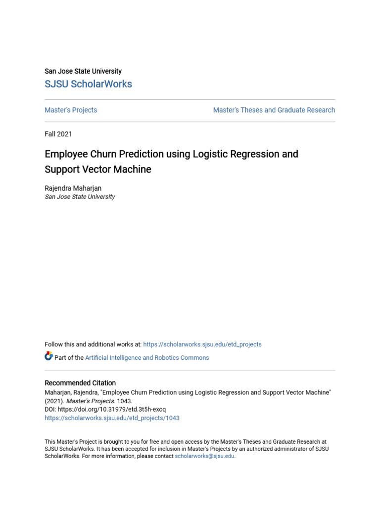 Maharjan, Rajendra, "Employee Churn Prediction using Logistic Regression and Support Vector Machine"