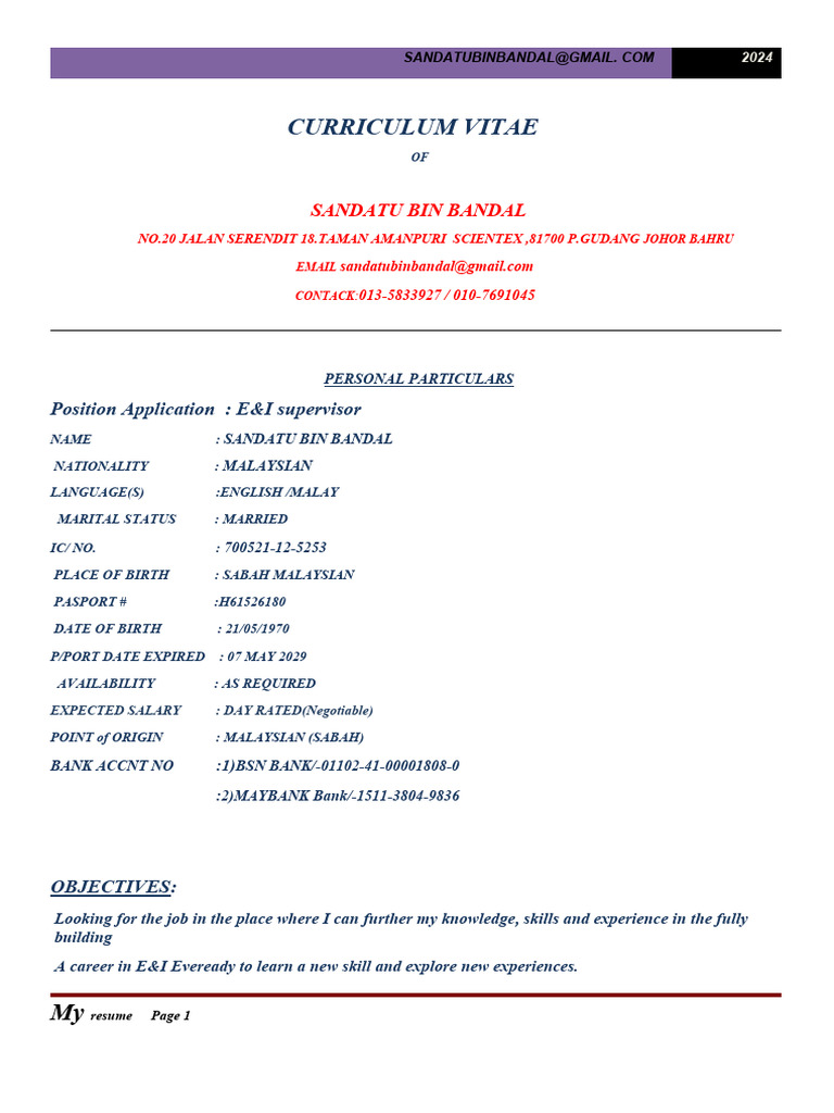 EXPECTED SALARY : DAY RATED(Negotiable)