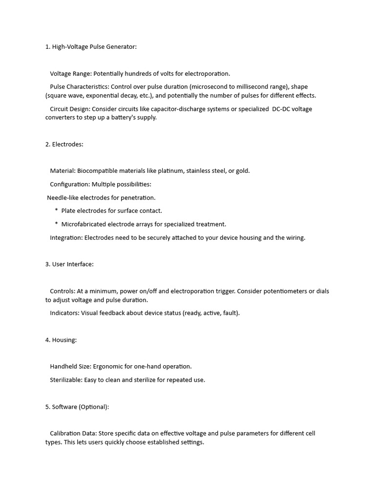 Voltage Range: Potentially hundreds of volts for electroporation.