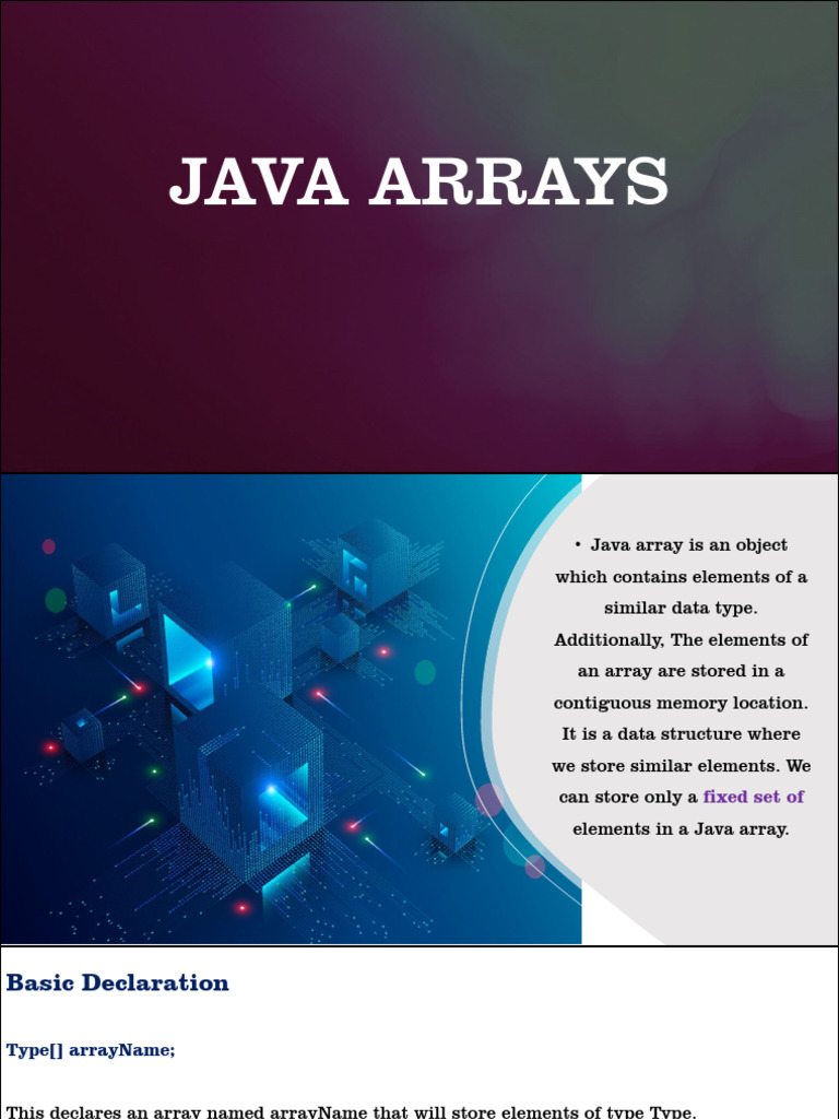 Initialization: When you create an array in Java, you must either specify the size of the array upfront