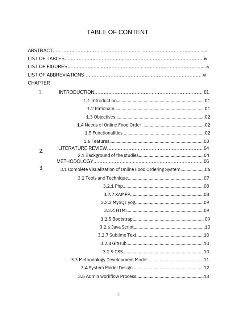 1.4 Needs of Online Food Order .………………………...………………..02