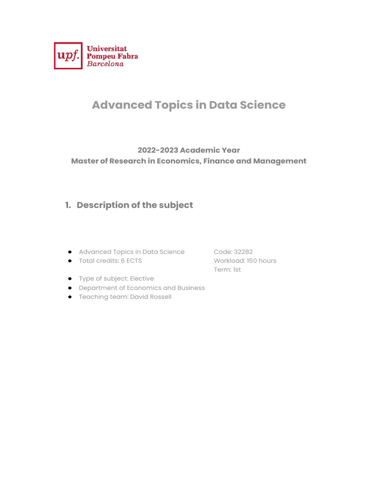 courses on Bayesian inference, Big Data and Machine Learning, or the Bocconi PhD