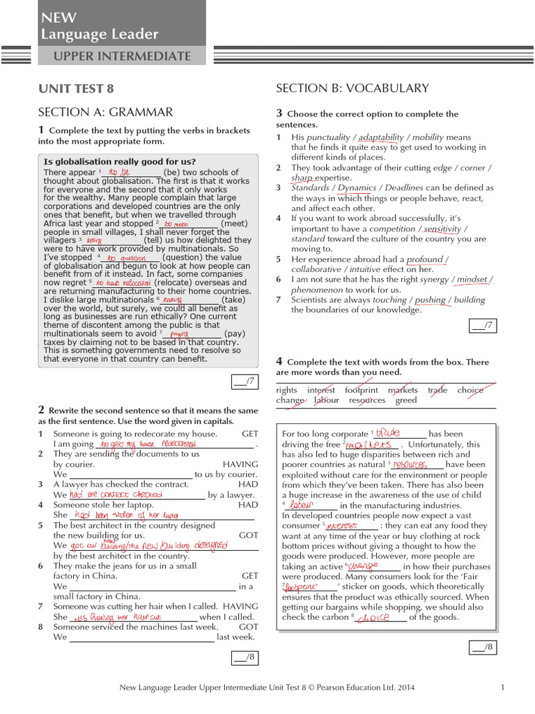 New Language Leader Upper Intermediate Unit Test 8 © Pearson Education Ltd. 2014 1