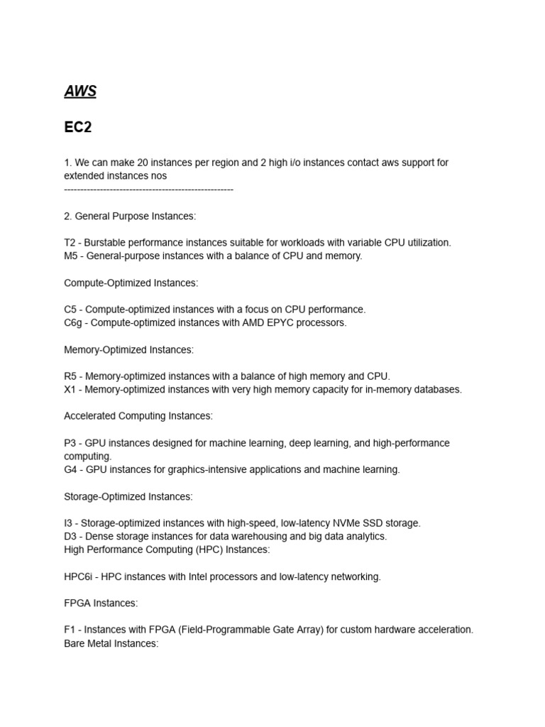 F1 - Instances with FPGA (Field-Programmable Gate Array) for custom hardware acceleration.