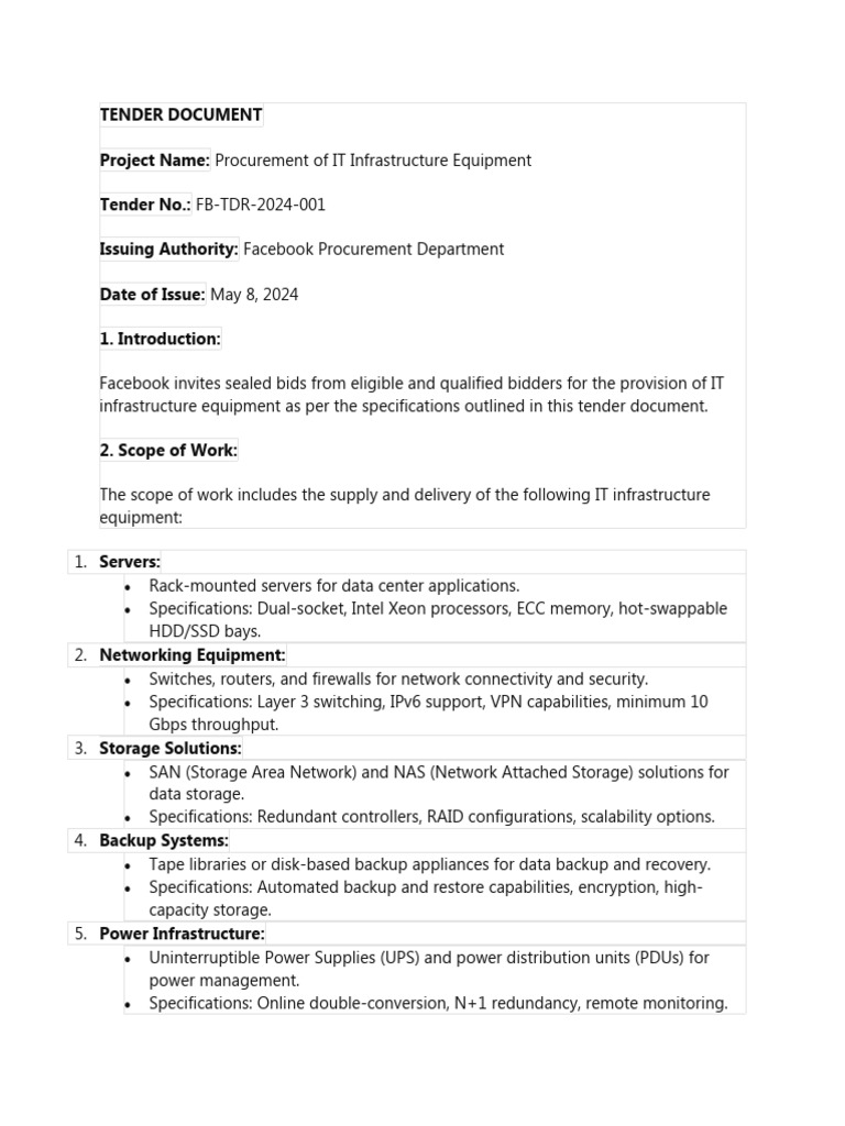 Facebook invites sealed bids from eligible and qualified bidders for the provision of IT