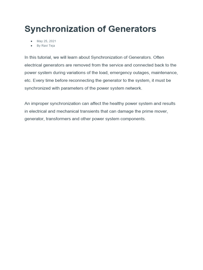 A beginner’s tutorial on the concept of Synchronization of Generators, the