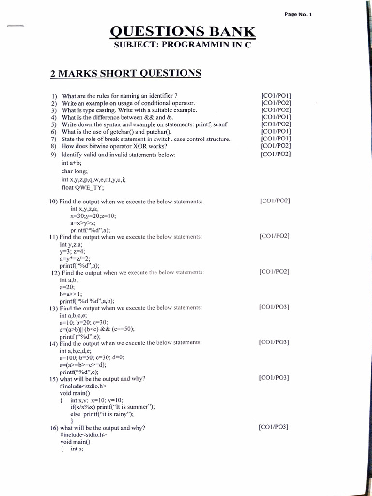 12) Find the output when we execute th e below srntcmcnts: [CO I/PO2]