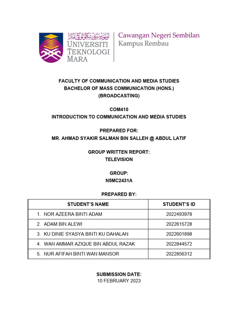 INTRODUCTION TO COMMUNICATION AND MEDIA STUDIES
