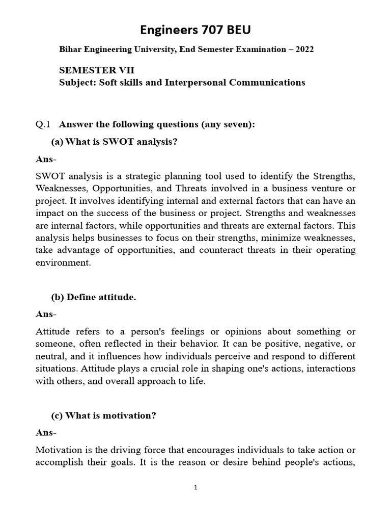 Q.2 What do you understand by Soft skills? Mention it’s importance at
