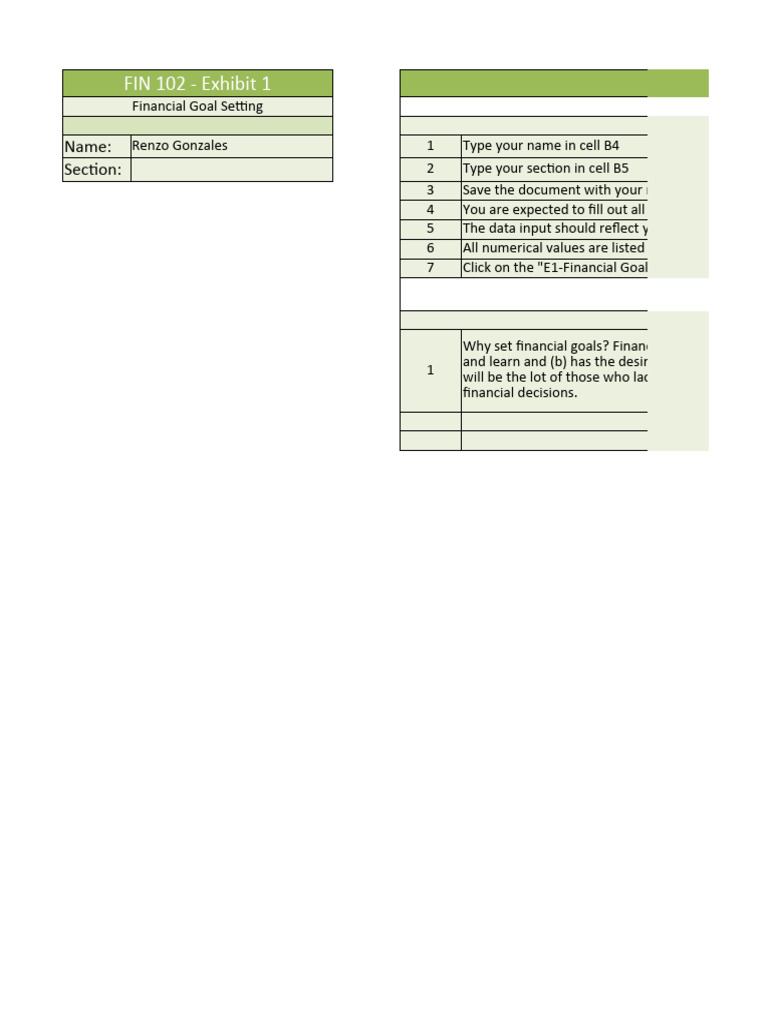 with your name: Exhibit 1 - Financial Goal Setting-[Last Name First Name]
