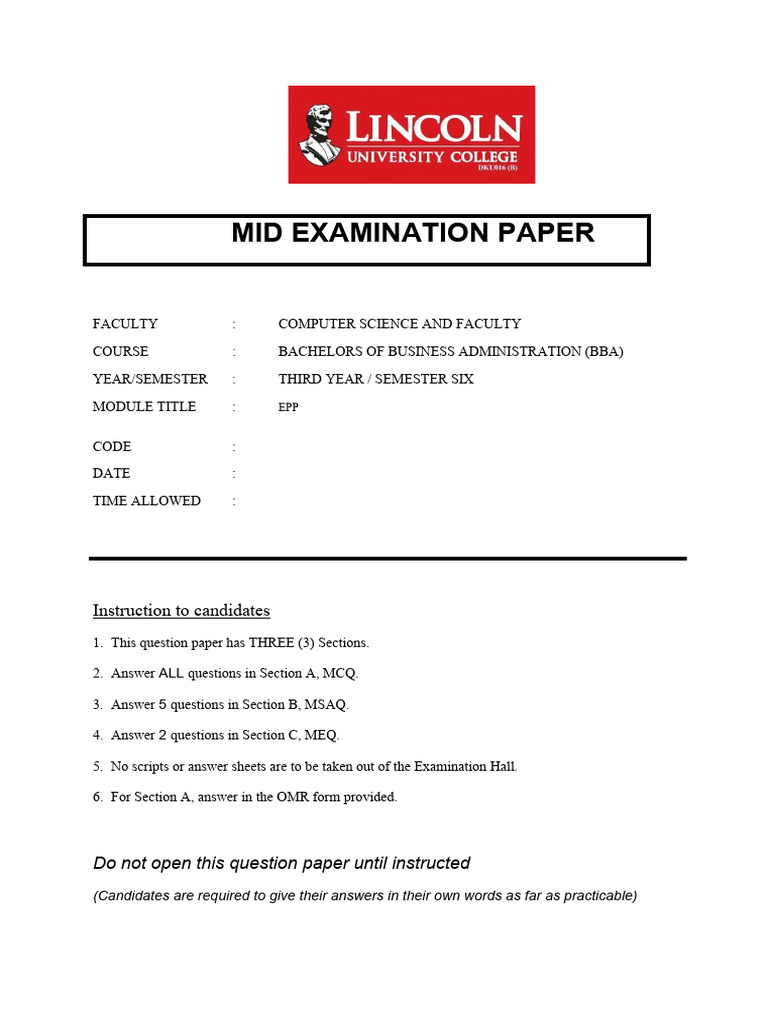 5. No scripts or answer sheets are to be taken out of the Examination Hall.
