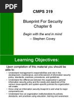 Describe managements role in the development, maintenance, and enforcement of information security policy, standards, practices, procedures, and guidelines Understand what an information security blueprint is, what its major components are, and how it is used to support the information security program