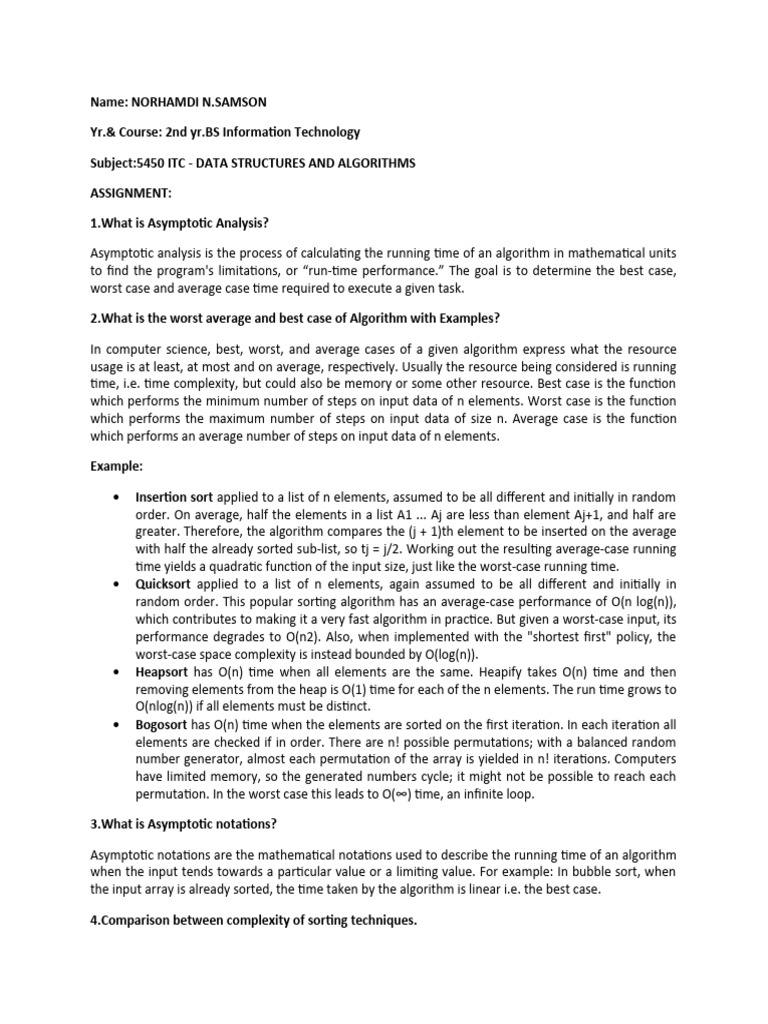 Subject:5450 ITC - DATA STRUCTURES AND ALGORITHMS
