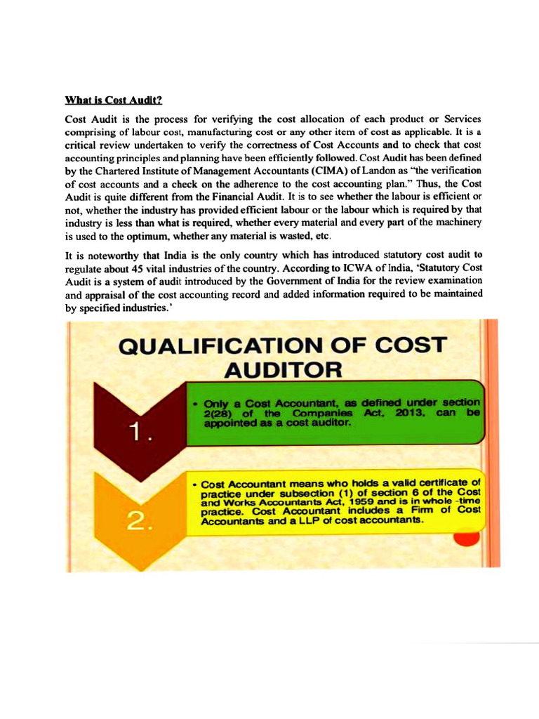 It is noteworthy that India is the only country which has introduced statutory cost audit to