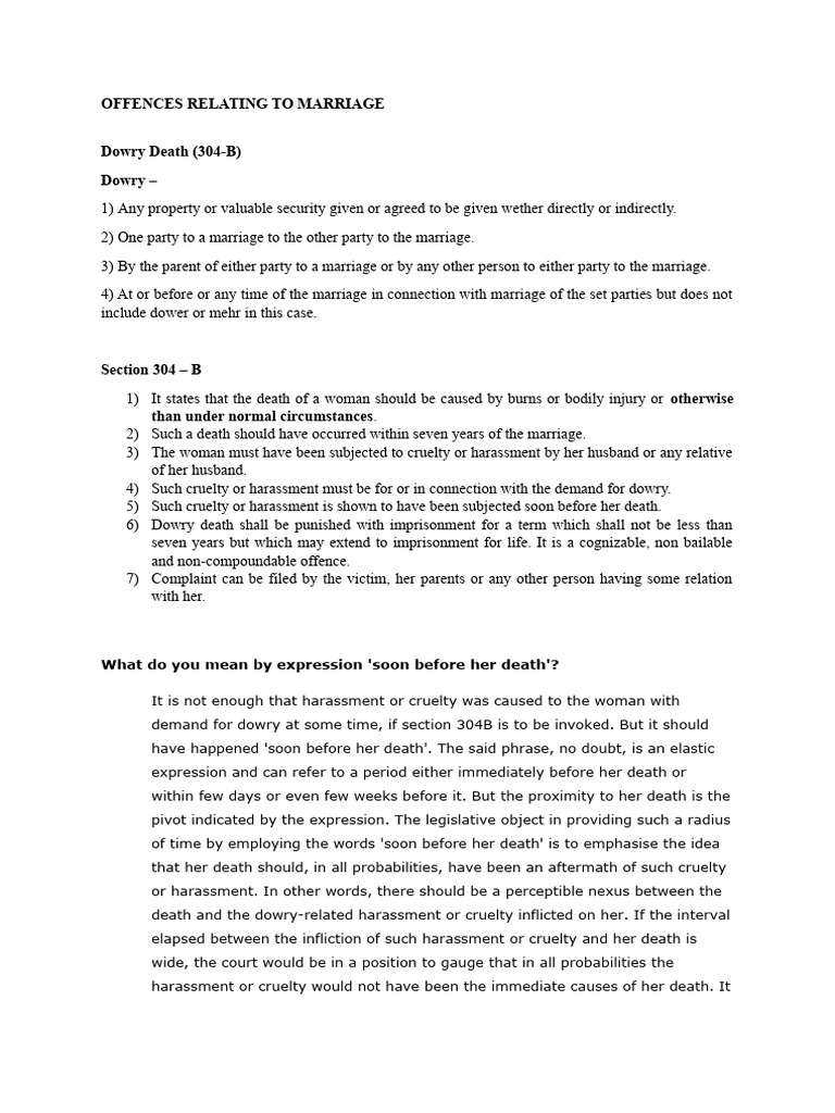 1) It states that the death of a woman should be caused by burns or bodily injury or otherwise