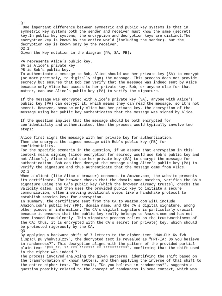 not Alice's), Alice should use her private key (SA) to encrypt the message for