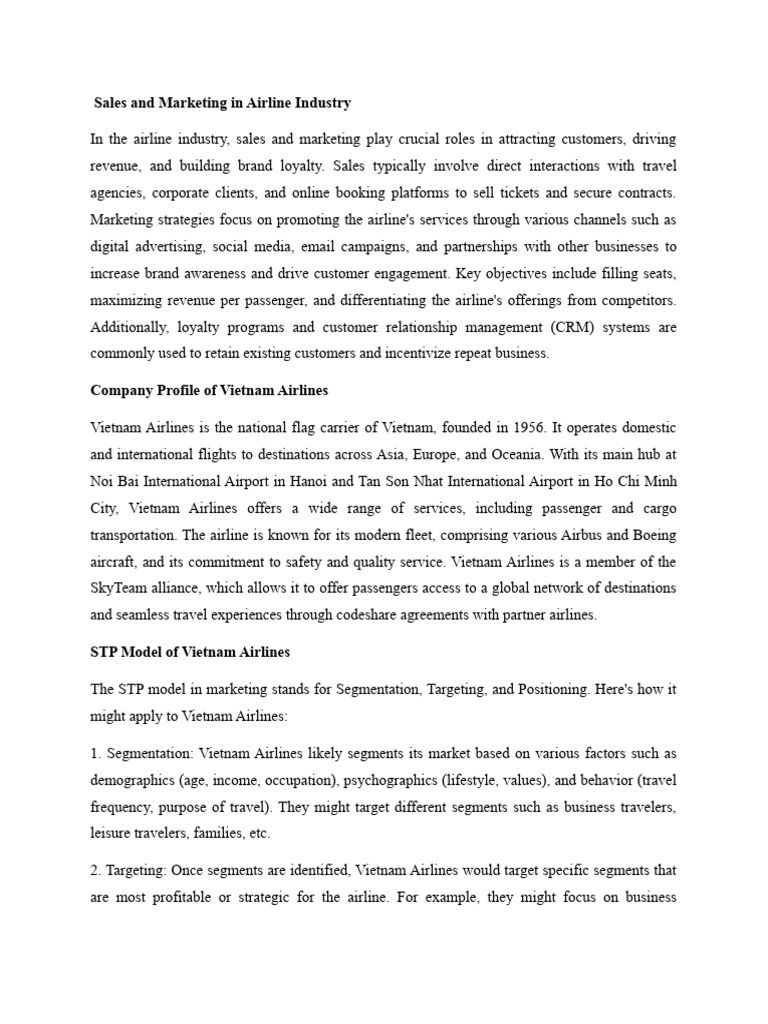 Overall, Vietnam Airlines likely employs the STP model to effectively identify and serve the