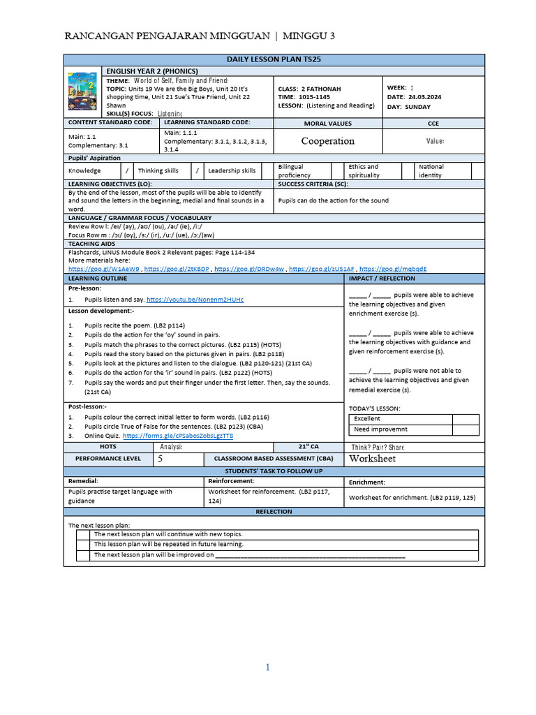 RANCANGAN PENGAJARAN MINGGUAN | MINGGU 3