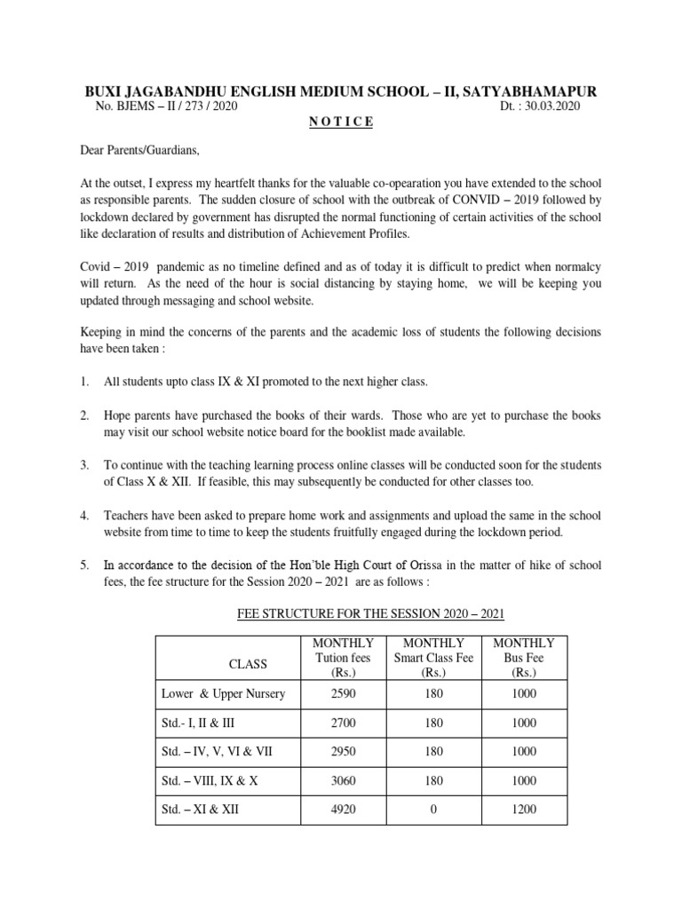 5. In accordance to the decision of the Hon’ble High Court of Orissa in the matter of hike of school