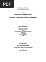 substantial resulting in an increase of 8.2 percentage points. This is an indication that cash flow volatility matters more than earnings volatility for valuation purposes. Finally, regression 5 includes all measures of risk together. Our results for our control variables and market risk measures remain unaltered. Further, the results for cash flow volatility remain unchanged even after the addition of earnings volatility. The effect on value is quite strong with the coefficient indicating a one standard deviation increase in cash flow volatility results in 36.8 percent decrease in value. This is consistent with Minton and Schrand (1999) and illustrates the value to presenting smooth cash flows. By including cash flow volatility in the regression, we have altered the interpretation of the coefficient on earnings volatility. As previously discussed, earnings volatility can be reduced via cash flow management or via the accrual estimates of managers. When both cash flow and earnings volatility are included in the model, the coefficient on earnings volatility represents the value of smoothing earnings via accrual management. With this in mind, the result for earnings volatility is drastically altered when considered simultaneously with cash flow volatility as witnessed by the fact that the coefficient switches from negative and significant in regression 3 to positive and significant in regression 5. Further, the presence of earnings volatility only marginally improves the explanatory power of the model when cash flow volatility is included by itself (0.2 percentage point improvement in R2 relative to regression 4), whereas cash flow volatility significantly enhances the explanatory power relative to regression 3, which only includes earnings volatility. The positive and significant coefficient on earnings volatility is inconsistent with earnings smoothing behavior adding value. In fact, it suggests that earnings smoothing via accrual management actually reduces value.
