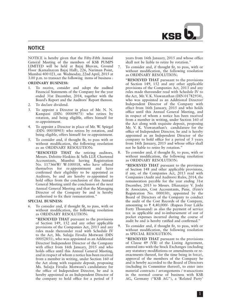the company to hold office for a period of 5 AG, Germany (“KSB AG”), a ‘Related Party’