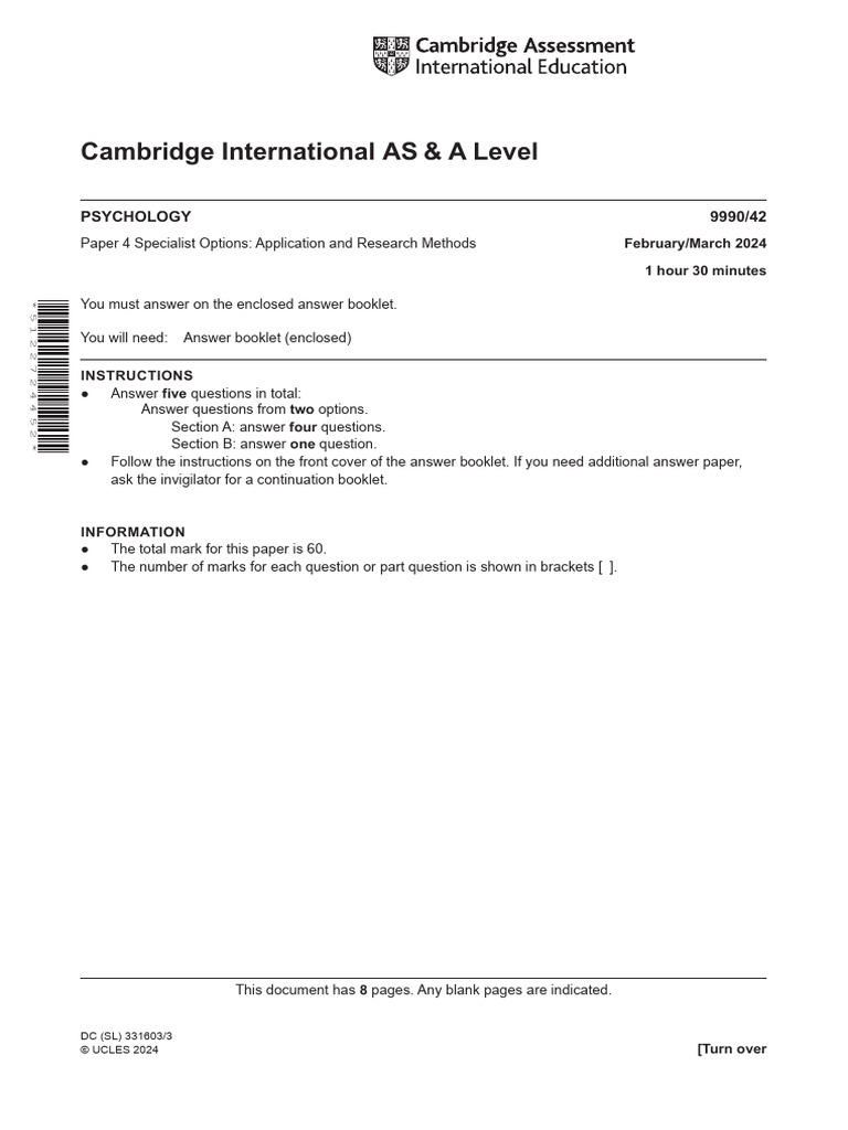 Paper 4 Specialist Options: Application and Research Methods February/March 2024