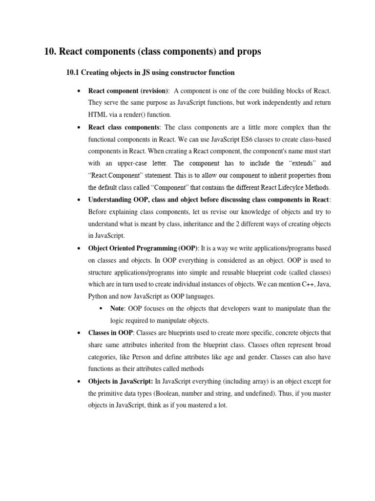 “this” keyword, we have to use this/ this.props throughout the program, but by the
