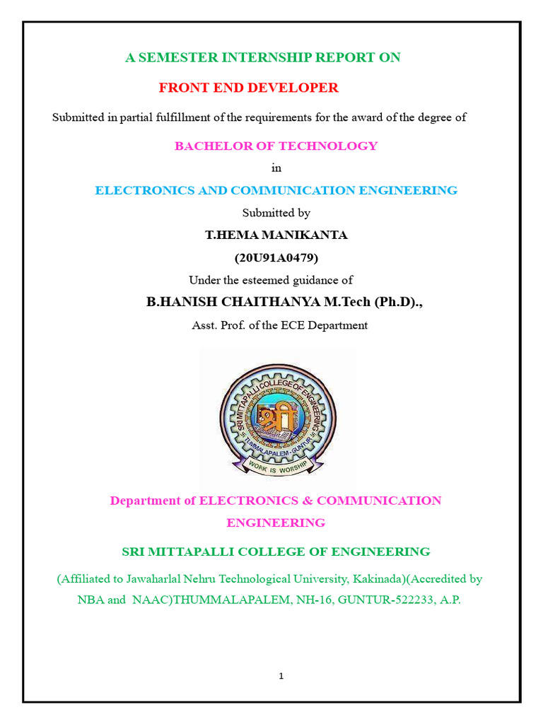 ,Guntur(AP) . The work which is being presented in the internship report submitted to