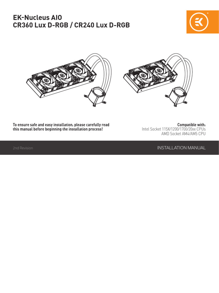 对于 EK-Nucleus AIO CR240 D-RGB 或 EK-