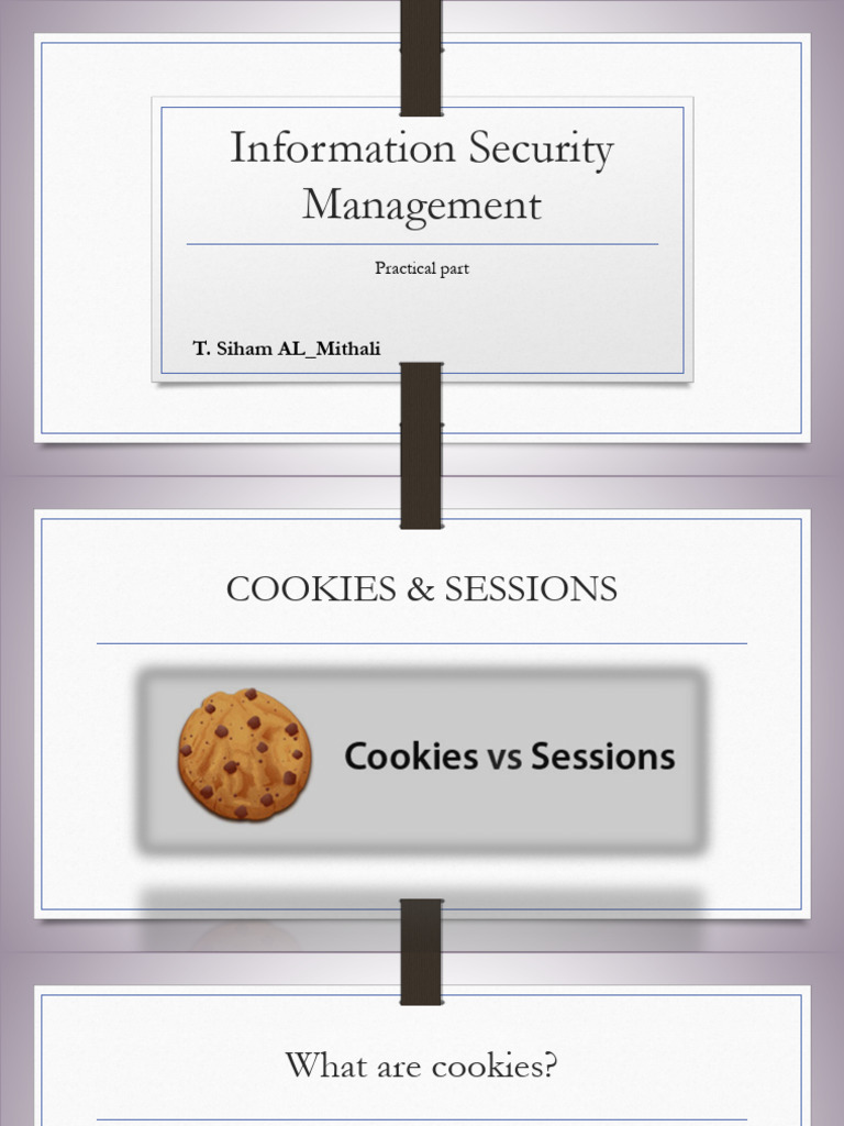 • Example: If a person has a login and password, this can be set as a cookie in their