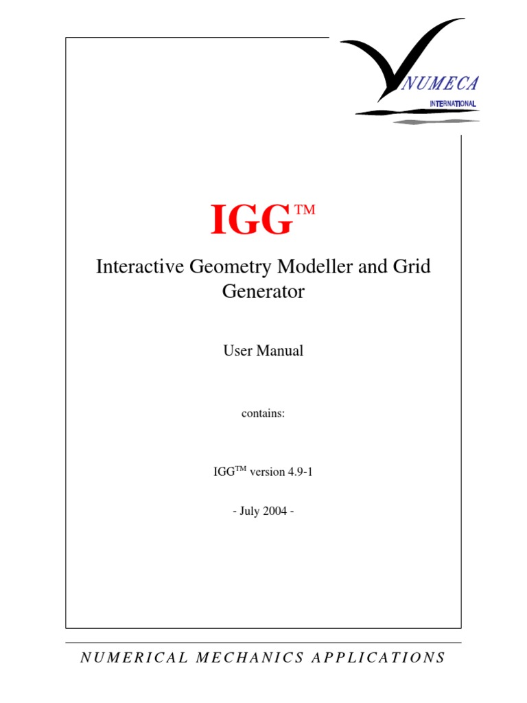 The structure of the IGG manual consists of several dedicated chapters which can be summarized as follows: Chapter 1 describes the basic terms needed to understand IGG functionalities. Chapter 2 describes the GUI and the different interaction modes with the system. Chapter 3 describes the fundamentals of meshing and the most commonly used options. Chapter 4 provides a basic hands-on tutorial for geometry modelling, topology decomposition and structured grid generation. It is highly recommended to follow this chapter before going any further with IGG. ferent modules. Each chapter is a description of a menu contained in the IGG interface.